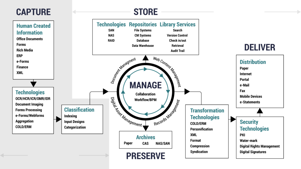 Lastly, whether an organization is looking to improve the customer-facing front-end side of the business or the back office information lifecycle platform, Zia Consulting can help modernize how information is stored, processed, decimated, archived, and ultimately dispositioned—particularly as it relates to unstructured personal content.