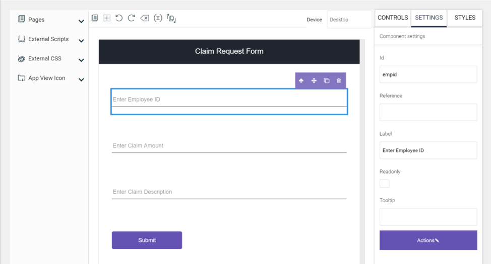 UI Models are created using a visual editor that allows pages to be created. Controls are then dragged and dropped on those pages and can be integrated with previously created datasources. There is a large selection of controls that can be configured and custom HTML and CSS can also be used to provide an even more custom experience.