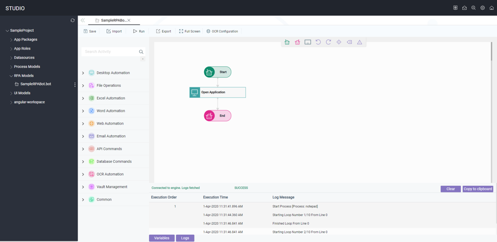 Robotic Process Automation (RPA) models can be created using the RPA Modeler UI. This allows for the creation of bots that can automate user tasks. These bots can be called in an attended mode where a user executes them locally or in an unattended mode where they can be scheduled or executed via a process flow. There are many tasks supported by the RPA Modeler including; desktop automation, file operations, Microsoft Excel and Word automation, web, email, database, API, and many more. The online help documentation provides a series of tutorials to show how bots for different activities can be built.