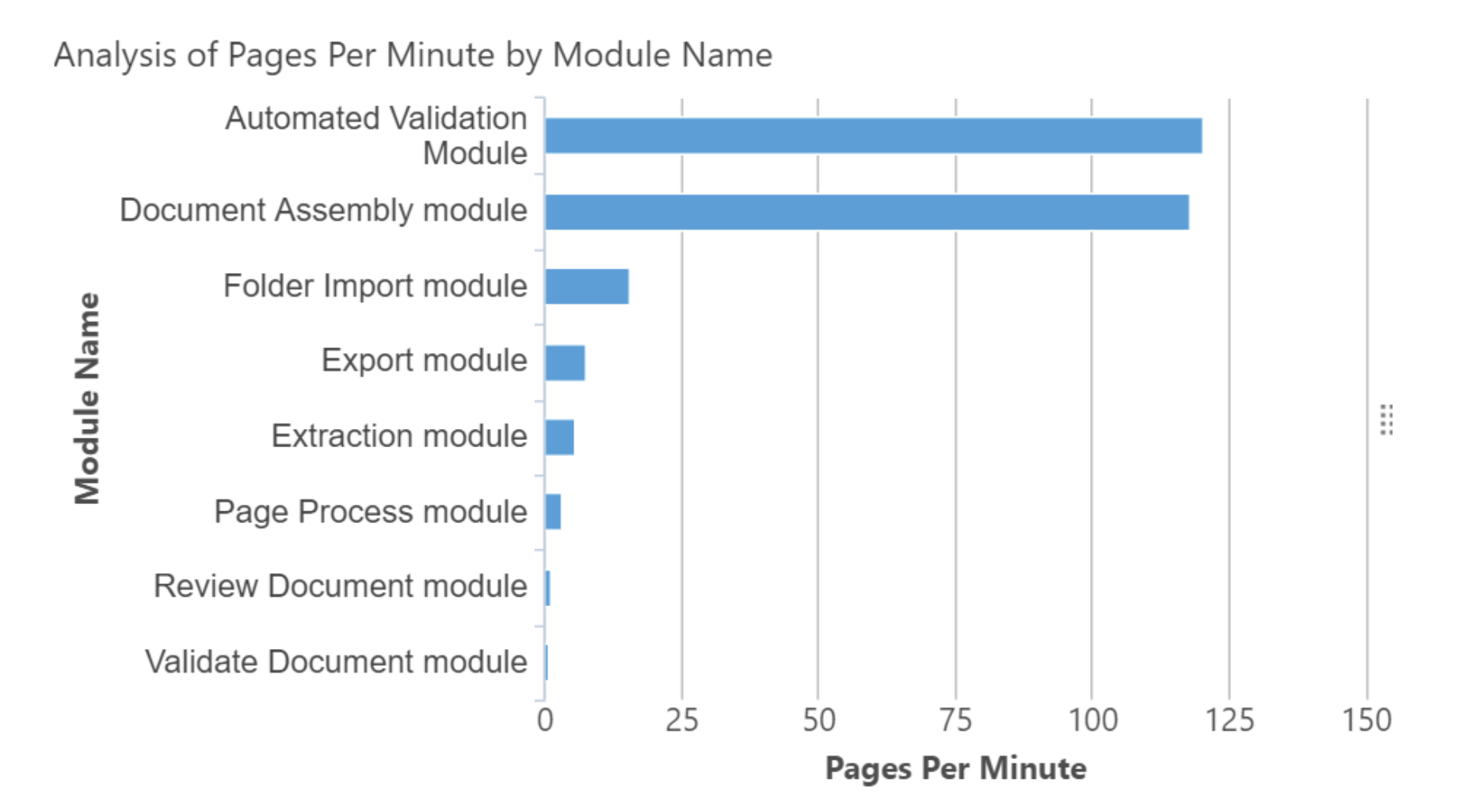 The higher the PPM values, the faster the modules are running—low values indicate slow processing. The review document and validate document data can be ignored as these are steps that rely on manual input for this sample BC.